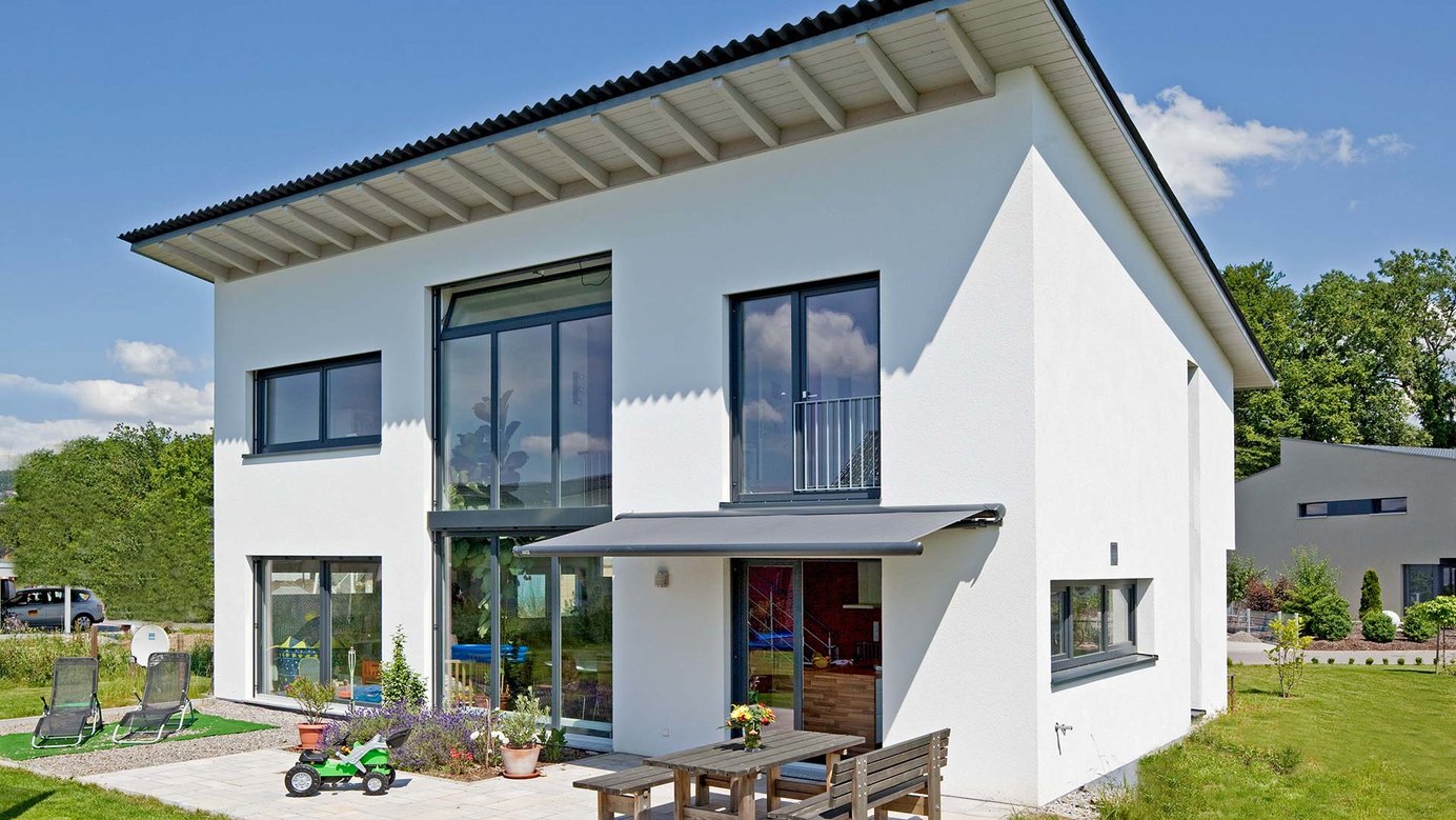 Das Satteldachhaus der Familie Heuberger ist der Klassiker in Neubaugebieten, der nicht nur unkompliziert genehmigungsfähig ist, sondern auch an die Zukunft denkt.